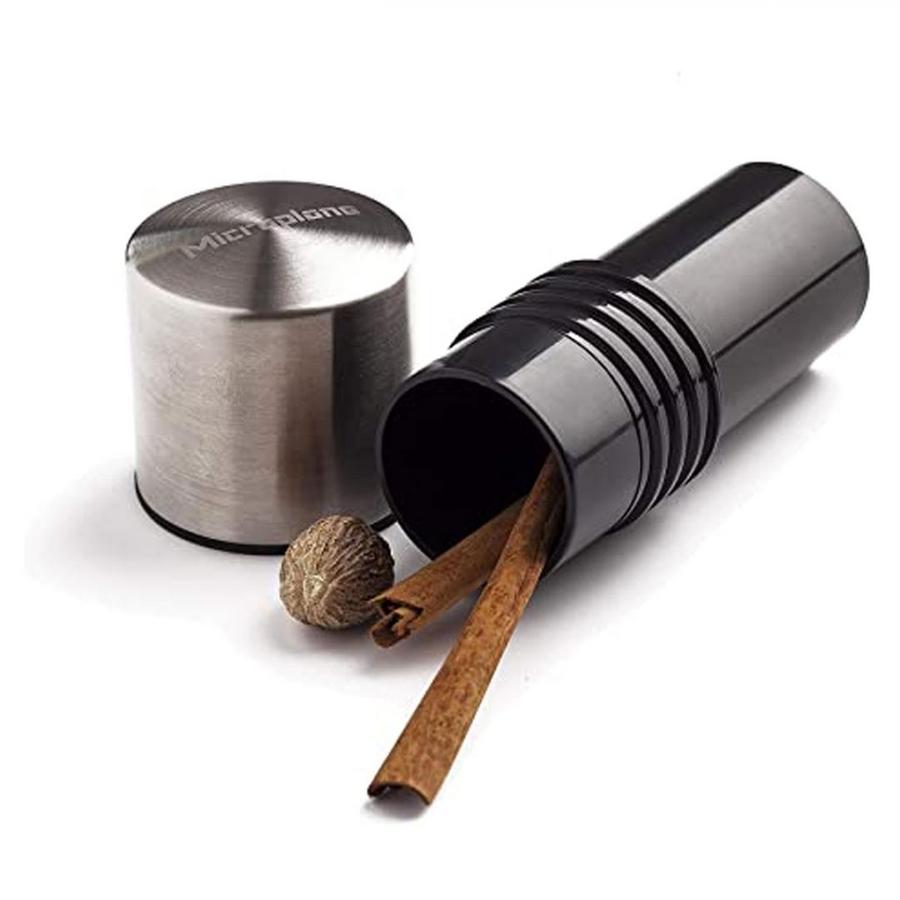 Projetado para ralar e armazenar especiarias duras, como noz-moscada, canela, feijão Tonka entre outros.