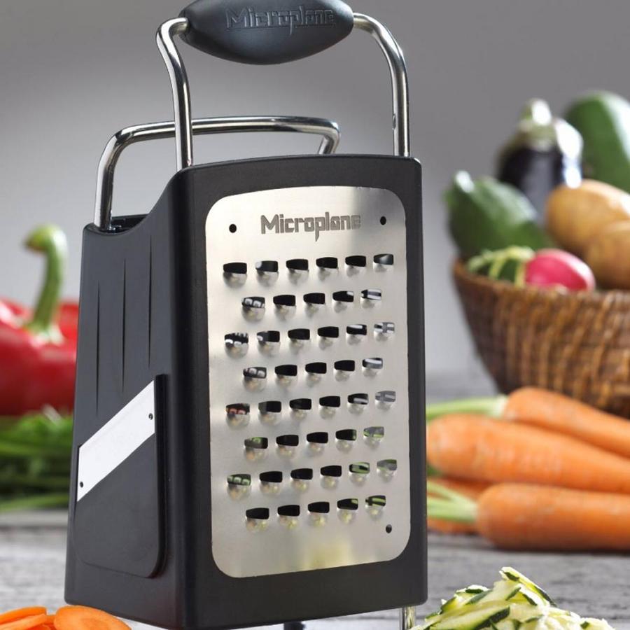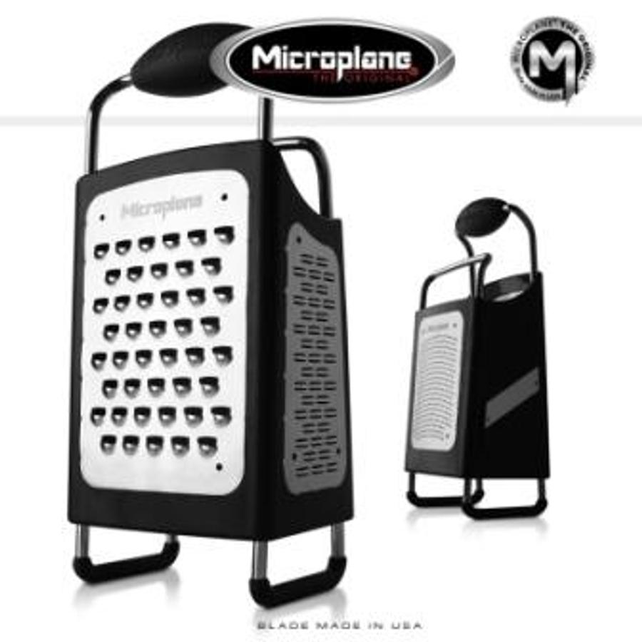O Microplane® 4-Sided Box Ralador apresenta uma lâmina Ultra Grossa e duas das mais populares lâminas patenteadas Microplane®: Fine / Zester e Medium Ribbon, - junto com uma quarta lâmina adicional do Slicer. Até agora, este produto foi designado como Melhor Ralador de Caixa de Cozinha Fina. Em janeiro de 2009, recebeu as honras na categoria Ferramentas manuais de cozinha do 2009 Housewares Design Awards.