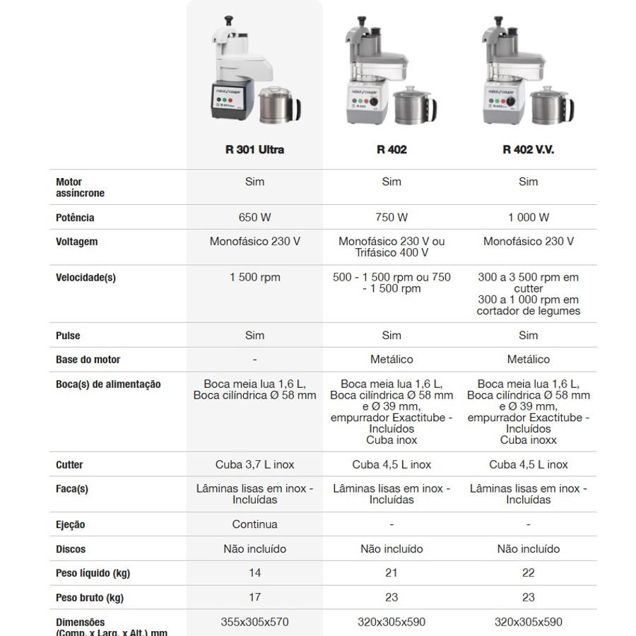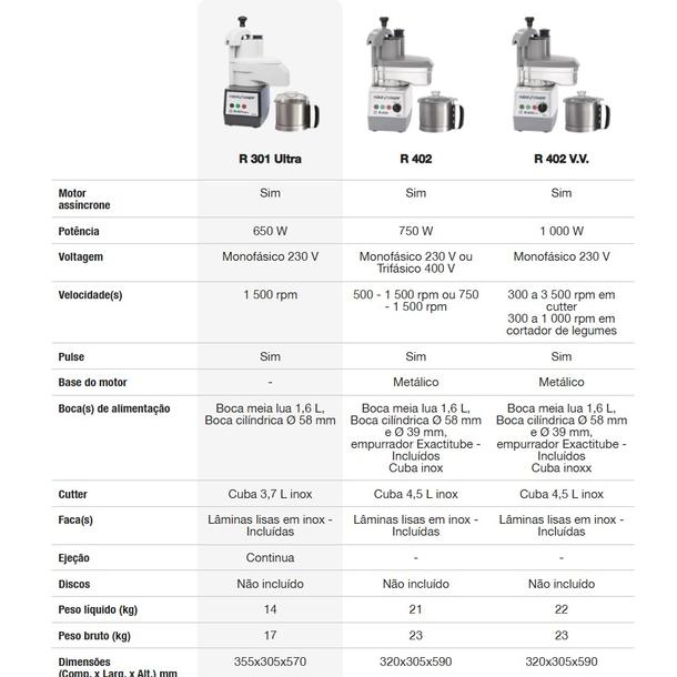 - Modelo de mesa compacto, que ocupa pouco espaço e permite uma grande variedade de cortes e preparações com o cutter.