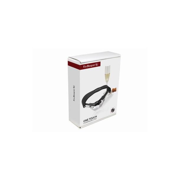 Pressionando a sua parte superior, por meio de um efeito de alavanca, abre a tampa da garrafa de champanhe. Nunca mais lhe custará abrir as garrafas de vinho espumante. Não há mais risco da rolha ser disparada. Produto patenteado.