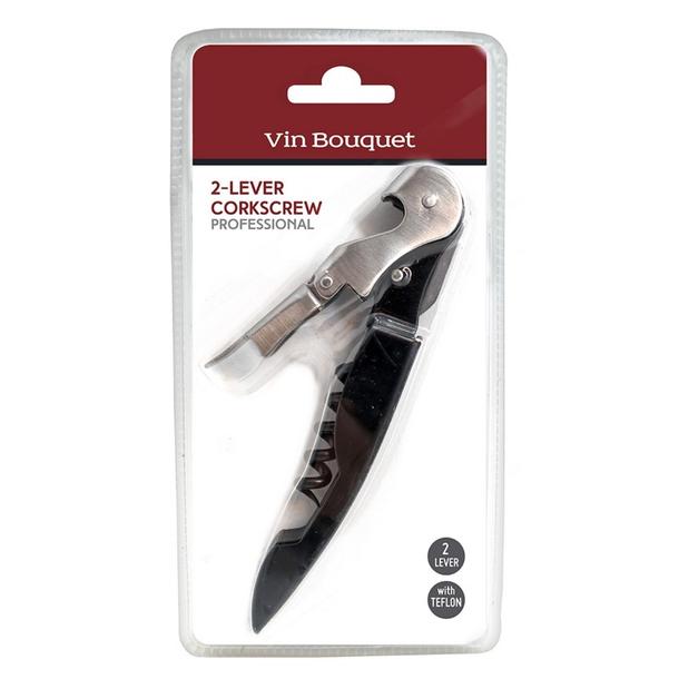 Saca-rolhas profissional preto a 2 tempos com Teflon